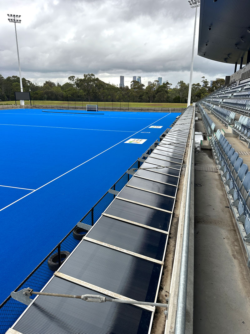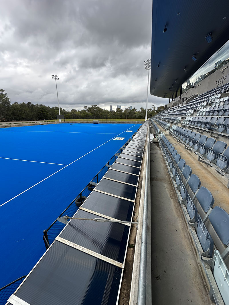 Replacement of the sideline roof at the State Hockey Centre.